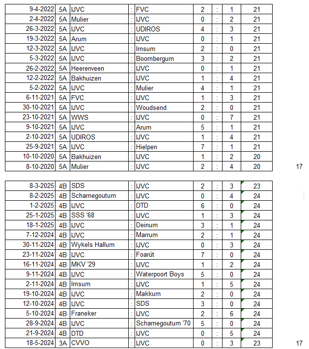 Tegen SDS wist IJVC voor de zestiende keer op rij te winnen in een lopend seizoen in competitieverband. Dit is een verbetering van de reeks die de selectie onder Johan Faber in de vijfde klasse neerzette. Destijds was Irnsum op eigen veld met 2-1 te sterk.