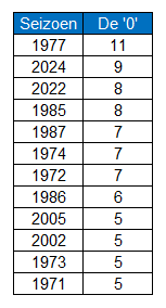 Wanneer we kijken naar het scoren op rij in een lopend seizoen dan zien we dat er nog één seizoen is waarin vaker gescoord werd dan het huidige seizoen. In dat seizoen werd er in de 21 van de 22 wedstrijden gescoord alleen in Joure bleef het doelpuntloos gelijk.