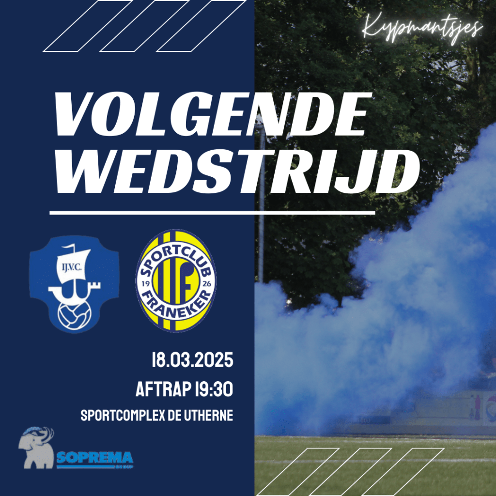 Door het gelijke spel van Elistha is IJVC tevens nog de enige zaterdagvereniging die de 100% status in stand wist te houden. De zondagverenigingen Alkmaarsche Boys (15), BZS (15) en DVS (13) zijn verder nog in de race die titel binnen te slepen. Voor ons staat er dinsdag dus weer genoeg op het spel om het laatste kwartier de achterstand tegen Franeker (1-2) om te buigen.