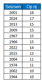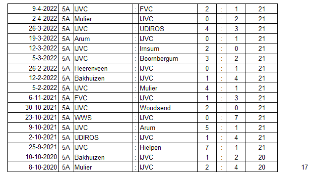 Bovenstaand behelst alleen de vierde klasse, want in de seizoenen 2014 en 2022 werd er tweeëntwintig wedstrijden op rij gescoord. En ook dat record kan dit seizoen nog wel eens gebroken worden door de veel scorende selectie van Postma.