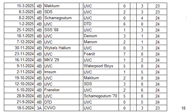 Met deze tiende clean sheet dit seizoen staat er alweer een nieuw record voor de deur. In de seizoenen 1975 (3A), 1977 (4A) en 2000 (5A) eindigde IJVC op elf clean sheets aan het einde van de rit. Er staan nog genoeg wedstrijden voor de deur om nog twee keer zonder tegendoelpunten van het veld te stappen.