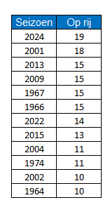 Komend weekend wordt speelronde 20 afgewerkt en dan gaan we echt richting het einde van de competitie. Dat wij als ‘Kypmantsjes’ weer eens 26 wedstrijden in een seizoen mogen afwerken is lang geleden. In het seizoen 2013/2014 was dit voor de laatste keer. Competities met elf, twaalf of dertien tegenstanders kregen we de jaren erop. Nu mogen we dus nog zeven keer het sterrenensemble van trainer Postma aan het werk zien in het lopende seizoen.