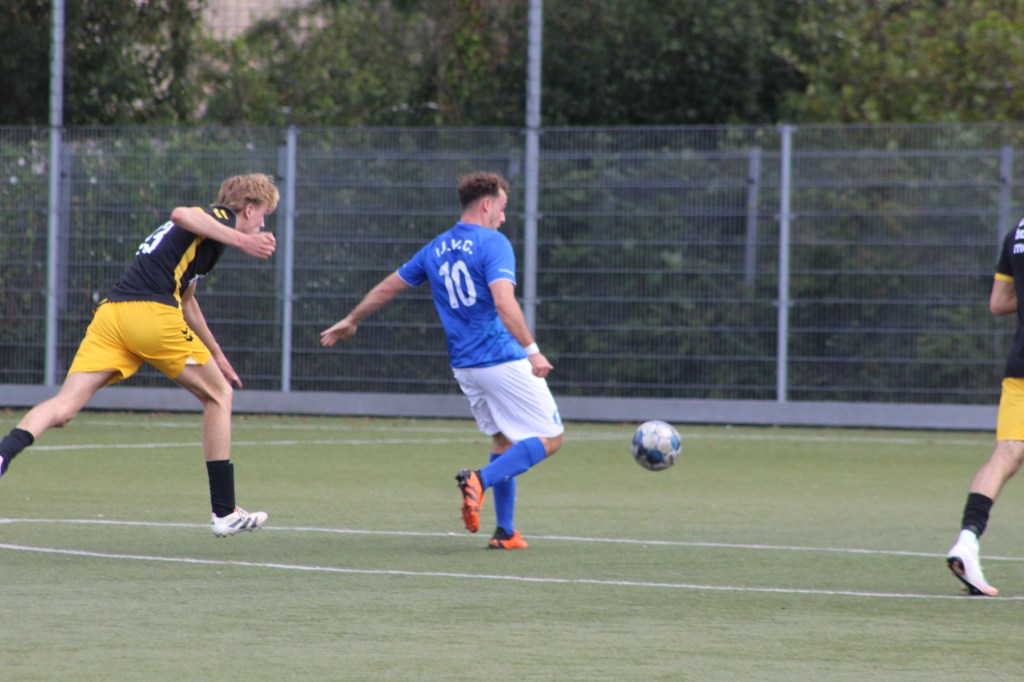 Naar de wedstrijd dan. IJVC week niet af van het spel dat het afgelopen seizoen al kenmerkte. Vooral in het eerste bedrijf zette de ploeg volle bak druk op de mannen uit de Hanzestad, wat al snel een aantal kansen opleverde. De grootste mogelijkheid kwam na een kwartier spelen via Dani Mohamad. Hij verscheen oog in oog met de Bolsward-doelman, maar zijn lob miste richting, waardoor de openingstreffer uitbleef. Een tiental minuten later was het wel raak. Jelle de Graaf kapte knap zijn tegenstander uit en haalde uit, maar zijn schot werd nog gestopt. Gelukkig stond Stienstra op de juiste plek en tikte de bal binnen: het eerste IJVC-doelpunt van seizoen 2025/26. IJVC bleef voor rust hoog druk zetten en dwong Bolsward steeds verder naar achteren. Vlak voor de thee was het opnieuw raak. Dani Mohamad kwam met een ietwat onorthodoxe actie door de defensie, waarna een Bolsward-verdediger zich verkeek en de bal op de stip ging. In twee pogingen wist Jelle de Graaf raak te schieten en zo de voorsprong te verdubbelen: 2-0.