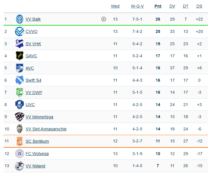 De laatste zeven seizoenen was het puntenaantal; 33, 34, 33, 33, 33, 33 en 31. Het voorgaande aantal punten leverde al die jaren een klassering tussen de zevende en negende plek op. Nu de verschillen in deze klasse nog steeds zo klein zijn is een overwinning voor beide verenigingen zeer welkom. Berlikum is nu de vereniging die aan het einde van het seizoen de herkansing speelt voor lijfsbehoud, het gat naar een veilige plek is maar drie punten.