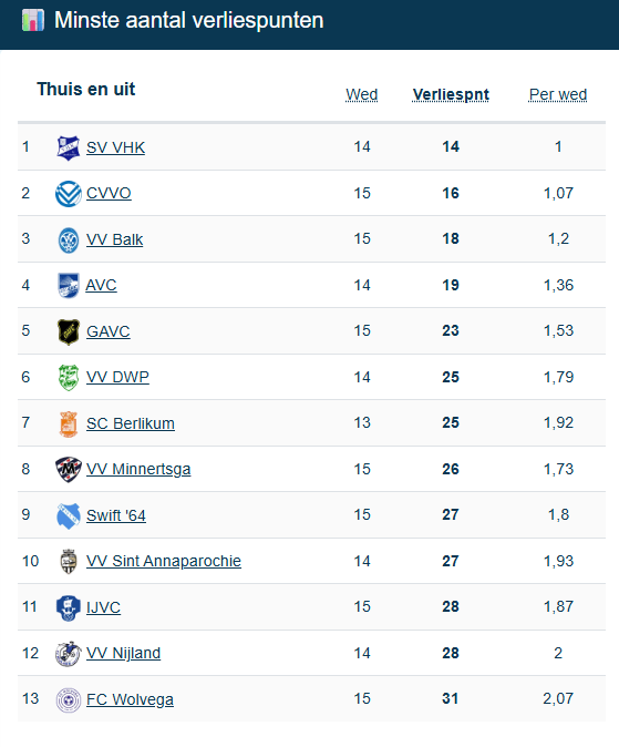 Na de wedstrijd van morgen volgt er een belangrijke periode met wedstrijden tegen achtereenvolgens Wolvega, Nijland, Sint Annaparochie en Berlikum. Verenigingen die bijna allemaal evenveel verliespunten hebben en dus strijden om uit de onderste regionen te komen.