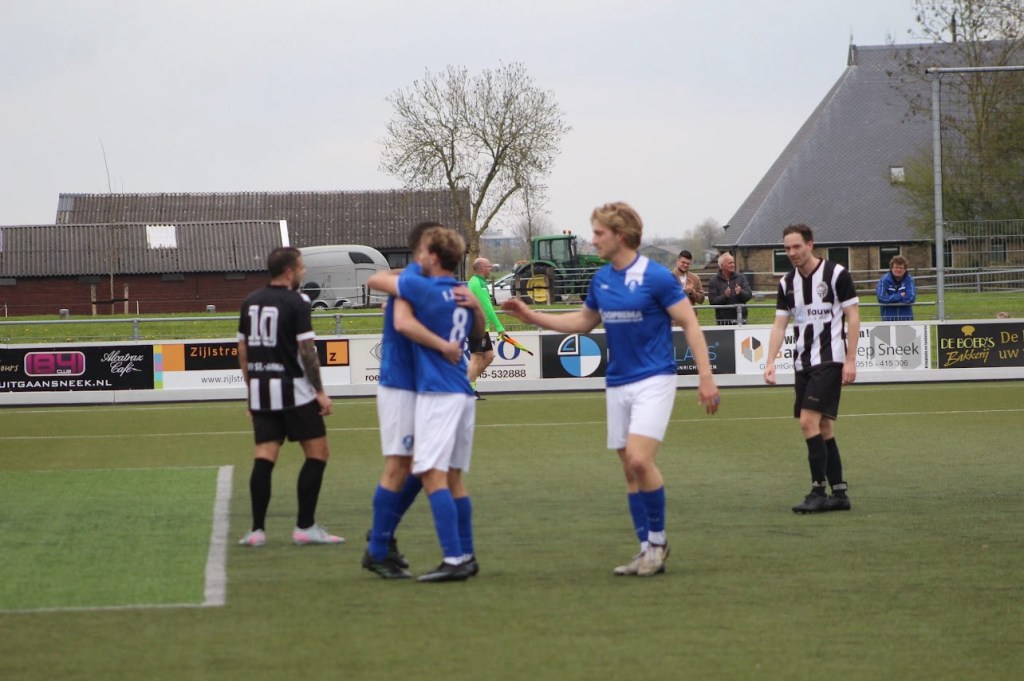 Opstelling: Hoekstra, Kramer (’46 Zijlstra), Spoelstra ©,Veltkamp (’75 Riemer de Boer), Bruggenkamp, Goeman (’62 Damhuis) Albertsma, de Graaf, Reitsma, Bos, Mohamad (’66 Zijsling)