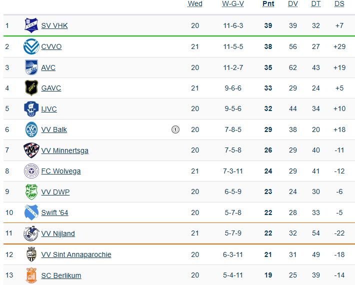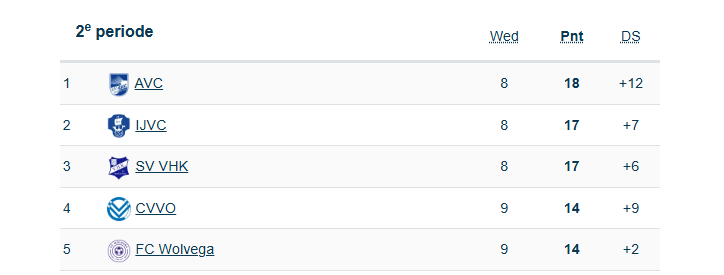 Na vijf overwinningen op rij zijn de weken van de waarheid prima afgesloten door de selectie van trainer Postma. Vijftien punten konden bijgeschreven worden waardoor de slotfase van de competitie zowaar nog een prijs opleveren kan. In de tweede periode staat het één punt achter op AVC vier wedstrijden voor het einde. Ook VHK en AVC treffen elkaar nog waardoor de strijd in de periode en het kampioenschap nog niet gestreden is.