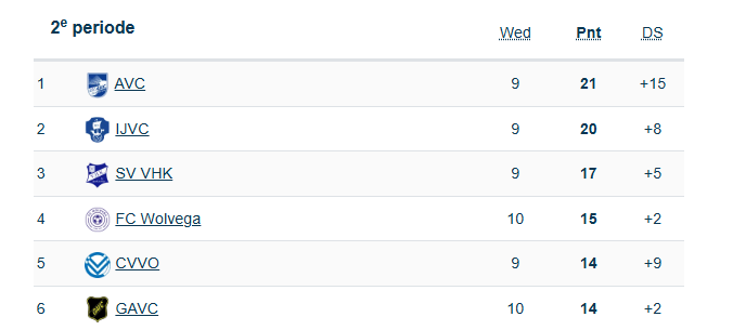 Door de zeges van AVC en IJVC is er een klein gaatje geslagen richting de achtervolgers in de periode. Wanneer AVC beslag legt op deze periode dan zou in de huidige stand CVVO de derde periode ontvangen en het IJlster IJVC buiten de boot vallen. Het is dus zaak voor de top-4 om in de top-3 te eindigen en zo ontstaat er dus een heuse stoelendans.