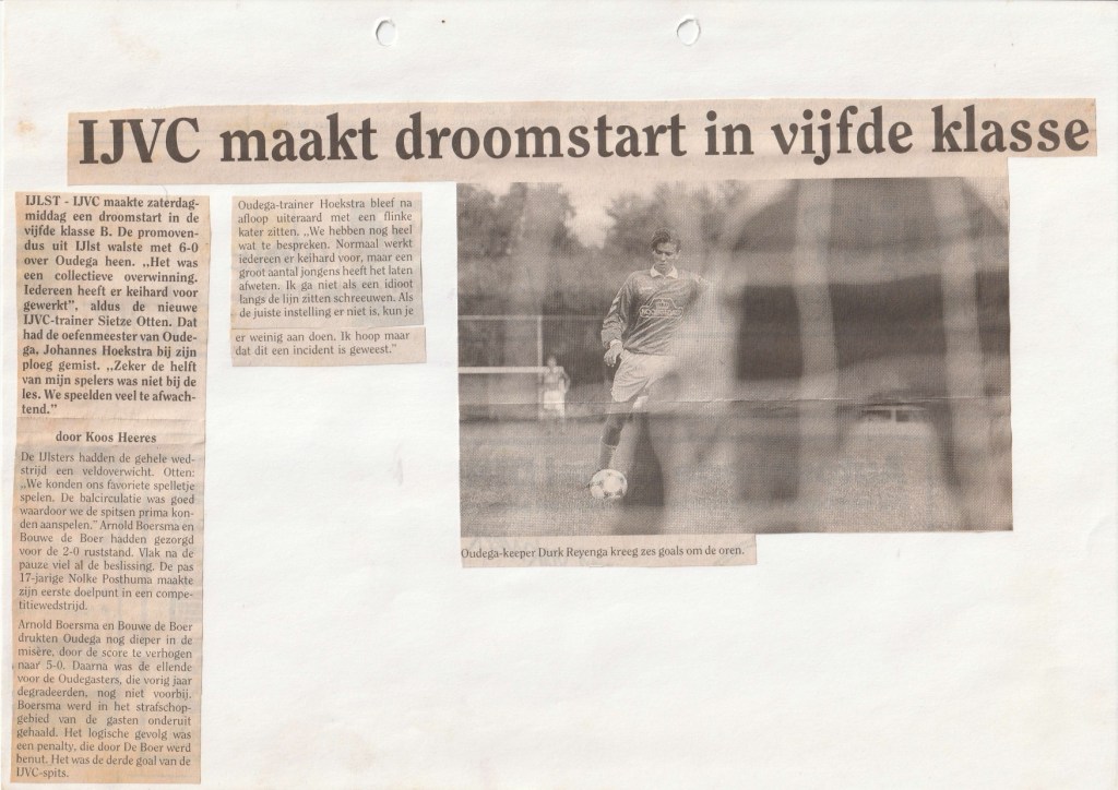 Nacompetitie IJVC – SVN ’69 3-2; hierin scoorde de Boer alle doelpunten