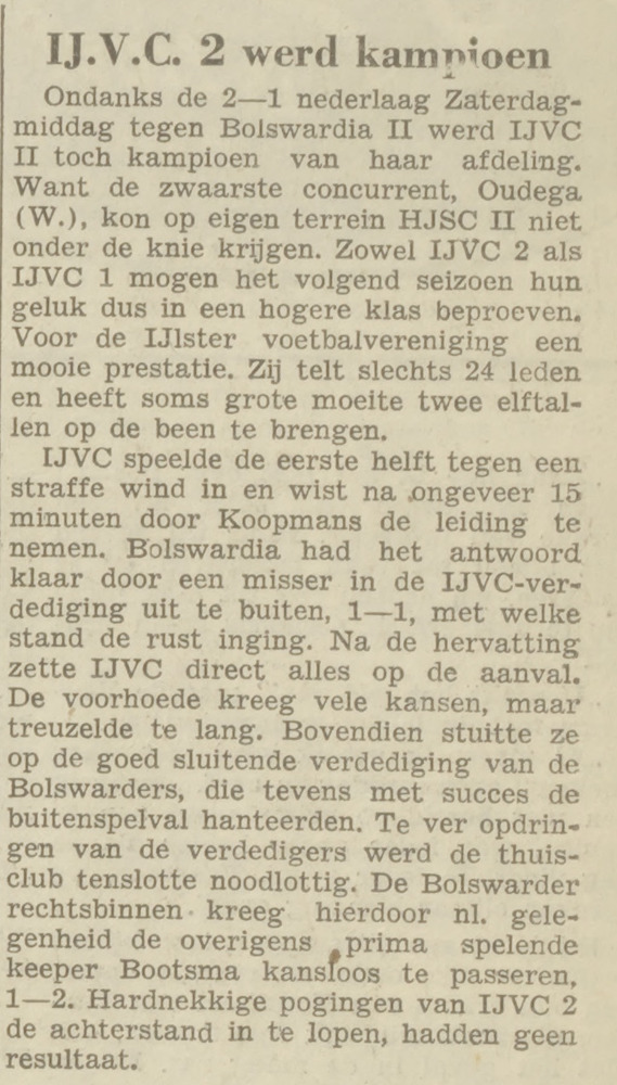 | 11-10 | IJVC | 5 | – | 3 | Froonacker | Piet Kroeze (2), Sint de Vries (2), linksbuiten |