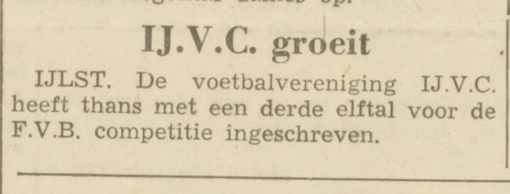 In oktober schreef IJVC een derde elftal in voor de competitie en werd ingedeeld bij IJVC 2 in de derde klasse. Het startte het seizoen met een 1-1 gelijkspel bij Scharnegoutum 1. Oudega 1 bleek later een maatje te groot (5-0)