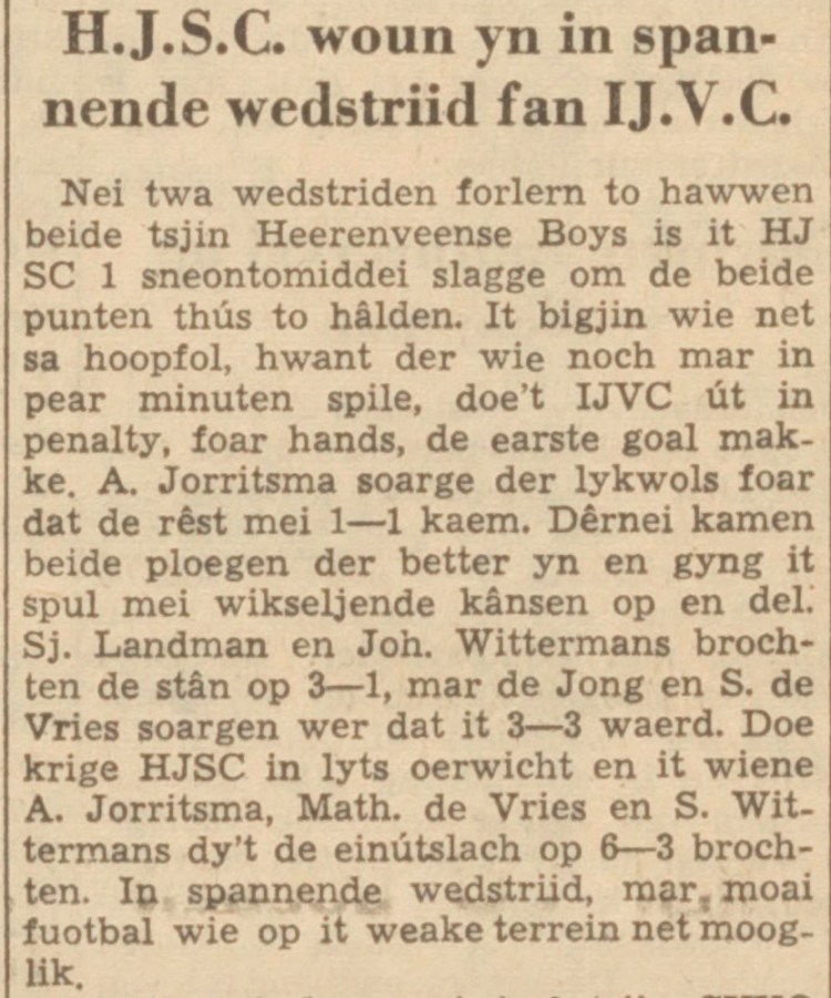 | 28-02 | IJVC | 2 | – | 5 | Heerenveense Boys | Henk Schraa, Thys Leefsma |