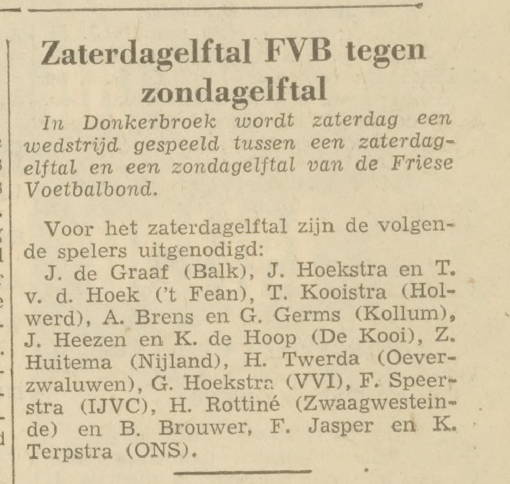 | 20-05 | IJVC | 10 | – | 0 | VVI | Sake Westerdijk (2), Jopie Mulder (2), Berend Otten (2), Thomas Elzinga, Jappie Haringa (2), IJpe de Boer |