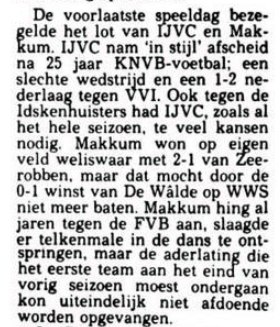 Die inhaalslag komt er evenwel dit seizoen niet wanneer na de winter Makkum en Hubert Sneek te sterk zijn. Een opleving tegen de Griffioen kan het pleit niet meer beslechten. IJVC daalt na 25 jaar KNVB af naar de Friesche Voetbalbond.