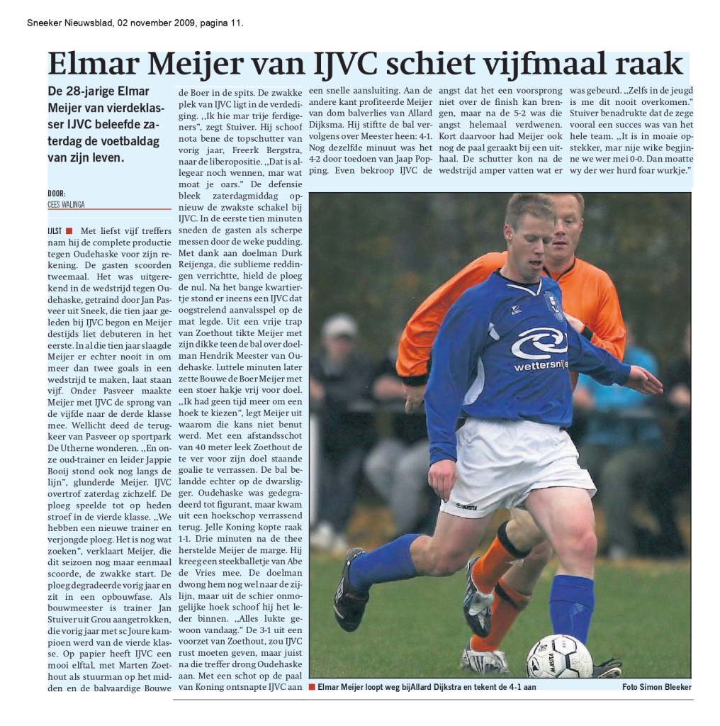Een week later wanneer Oudehaske op bezoek komt is de middag van Elmar Meijer. Hij schaart zich met vijf treffers in één wedstrijd naast IJpe de Boer en Piet Kroeze.