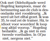 Om terug te komen op de verjonging die onder andere ten koste ging van Jan Hogeling, zoals hij zelf in 2007 al zei niet in een tweede te gaan voetballen vertrok hij later ook naar Willemsoord om daar trainer/speler te worden. Zijn zoon Reimer maakte juist dit seizoen zijn debuut.
